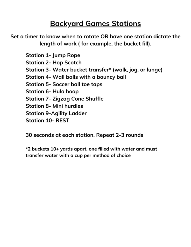 Don’t think too hard, the traditional ways kids get active outdoors can be a great workout for you too! Things like tag, red light green light, hula hoop, jump rope, badminton, etc. are all ways you can play with your kids while getting in a sweat. I made a circuit workout using a variety of these methods you can try with your family, find it below!